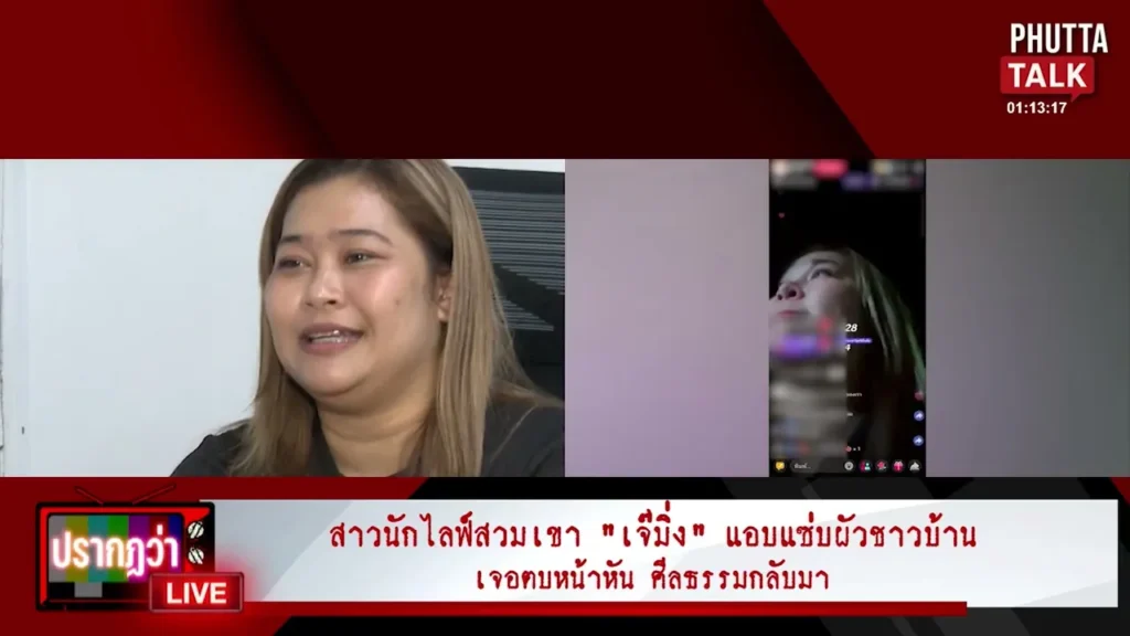 - ประเด็นสามี-ภรรยา: ภรรยาคนหนึ่ง (คาดว่าคือ เจ๊มิ่ง) จับได้ว่าสามีแอบมีความสัมพันธ์กับผู้หญิงอีกคน (สาวนักไลฟ์)