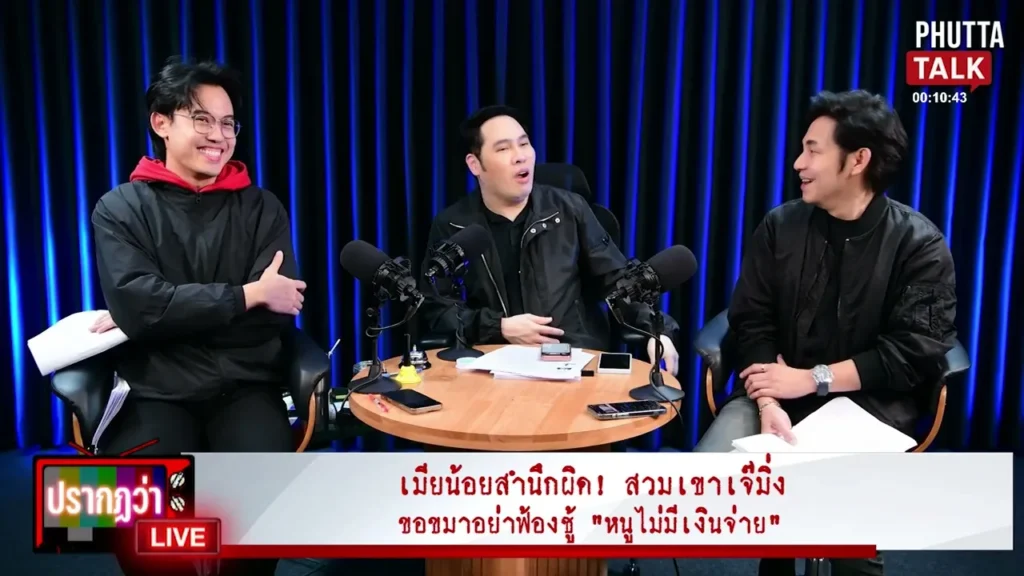 เกี่ยวข้องกับเหตุการณ์ที่ภรรยาน้อยสำนึกผิดและมาขอขมาภรรยาหลวง (ที่ถูกกล่าวถึงว่าชื่อ “เจ๊มิ่ง”) เพื่อขอไม่ให้ฟ้องร้องเรื่องชู้สาว โดยให้เหตุผลว่าตนเองไม่มีเงินจ่ายค่าเสียหาย