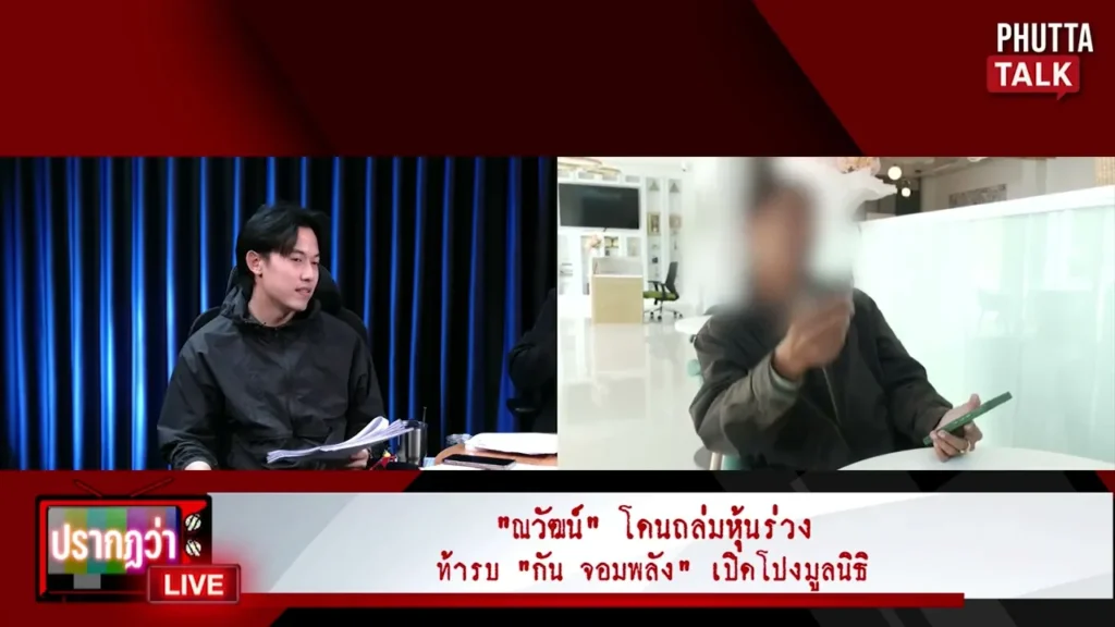 วิดีโอนี้เป็นรายการสด “ปรากฏว่า live” ของช่อง Phutta Talk ซึ่งนำเสนอประเด็นความขัดแย้งระหว่าง “ณวัฒน์ อิสรไกรศีล” (บอส ณวัฒน์) ประธานบริษัท มิสแกรนด์ อินเตอร์เนชั่นแนล และ “กัน จอมพลัง” โดยเน้นไปที่การเคลื่อนไหวของบอส ณวัฒน์ ล่าสุด 3 ประเด็นหลักคือ การฟ้องร้องผู้ที่ป่วนบัญชี การถูกโจมตีทางหุ้น และประเด็นเงินบริจาค