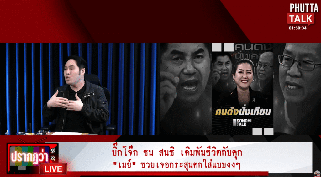 - การวิพากษ์วิจารณ์ “เมย์ ชนิดา” ผู้ดำเนินรายการ: คุณสนธิ ลิ้มทองกุล ได้วิพากษ์วิจารณ์ “เมย์ ชนิดา” ผู้ดำเนินรายการ คนดังนั่งเคลียร์ ที่ได้เชิญบิ๊กโจ๊กมาออกรายการ โดยตั้งข้อสังเกตว่ารายการเปิดโอกาสให้บิ๊กโจ๊กกล่าวหาผู้อื่น (พล.ต.ท. ไตรรงค์ และ พล.ต.ต. ทินกร) โดยไม่มีการซักค้านอย่างเพียงพอ และไม่ได้ให้ความเป็นธรรมกับอีกฝ่ายหนึ่ง ซึ่งอาจเสี่ยงต่อการถูกฟ้องในข้อหาหมิ่นประมาทร่วม