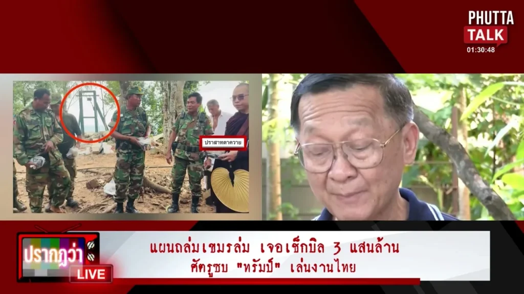 - ประเด็นความขัดแย้ง (อ้างอิงข้อมูลอื่น): ผู้ดำเนินรายการอ้างอิงข้อมูลจากสื่ออื่น (สยามรัฐ) และนักข่าว (คุณวาสนา) ที่วิเคราะห์ว่าหากมีการสู้รบกันอีกครั้งในอนาคต ฝ่ายกัมพูชาอาจมีการใช้โดรนโจมตีเป็นฝูง