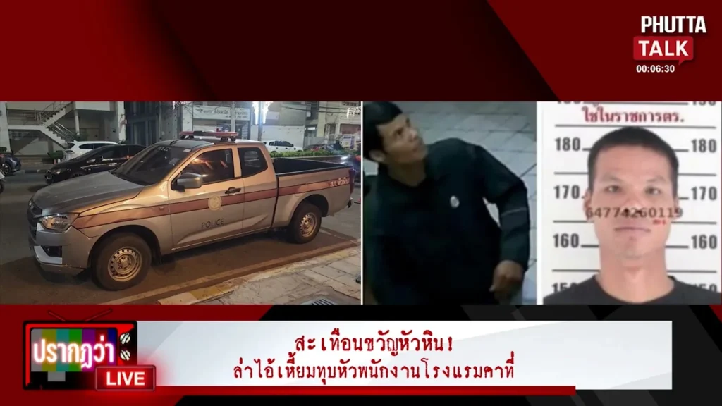 - ตำรวจกว่า 100 นาย ทั้งจาก สภ.หัวหิน และชุดสืบสวนภาค 7 กำลังปิดเมืองและตรวจค้นพื้นที่อย่างหนัก รวมถึงตรวจสอบเส้นทางหนีผ่านชายหาดที่คนร้ายอาจใช้เดินทะลุหลบกล้องวงจรปิด