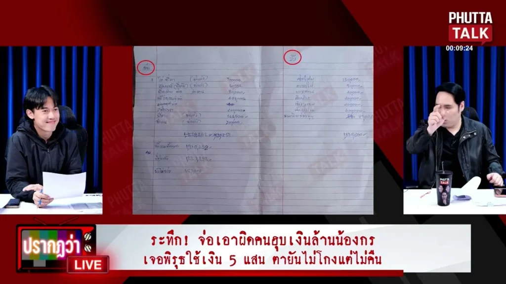 - พิรุธในบันทึกรายจ่าย: มีการเปิดเผยกระดาษจดบันทึกรายจ่ายที่อ้างว่าใช้ในงานศพสูงถึง 700,000 บาท ซึ่งชาวบ้านและพิธีกรตั้งข้อสังเกตว่าไม่น่าเป็นไปได้สำหรับงานศพในต่างจังหวัดที่จัดแบบเรียบง่าย