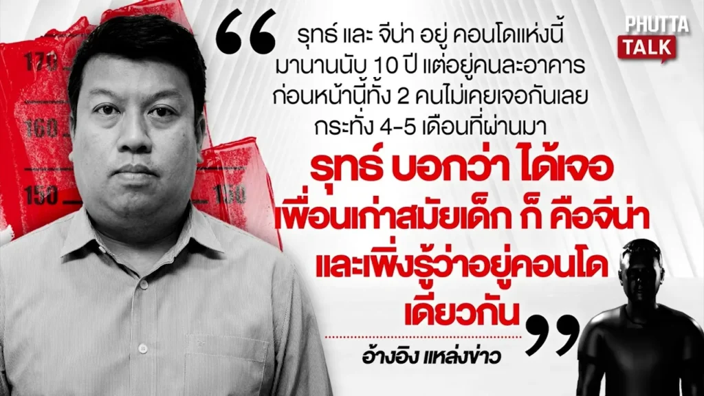 - ความสัมพันธ์ที่ซับซ้อน: จีน่าอาศัยอยู่ในคอนโดเดียวกับคุณรุมานานกว่า 10 ปี และเพิ่งมาสนิทสนมกันในช่วง 7 เดือนหลัง ขณะที่นายสรวีซึ่งเป็นสามีเก่ายังคงเข้าออกคอนโดนี้เพื่อมารับลูกสาว ทำให้มีโอกาสเห็นความสนิทสนมของทั้งคู่